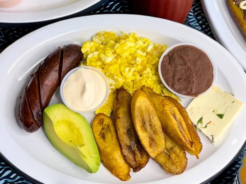 Sweet plantain, sausage, avocado, fried beans, cheese & cream